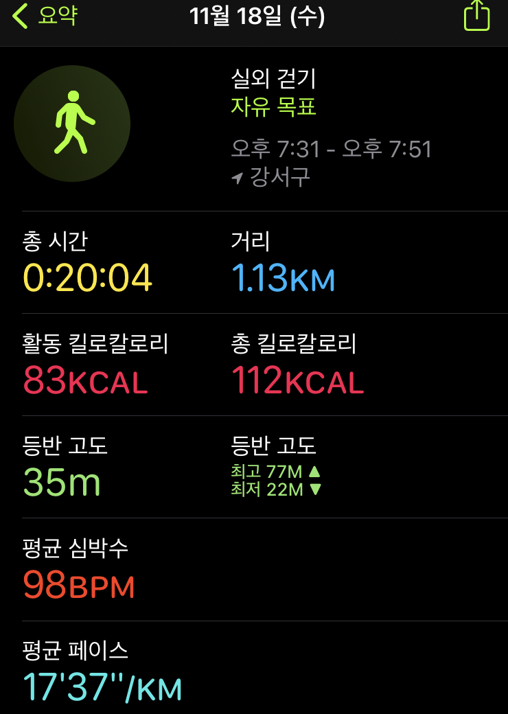 | [러닝로그] 퇴근, 3.5km 새벽러닝! (2) | 2020.11.14 |