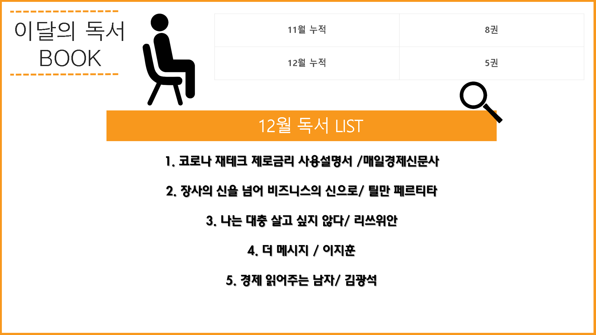 Self growth review/monthly review 12월 자기계발 REVIEW by Captain-J 2020. 12. 31. 공유하기 게시글 관리 Growth Index 저작자표시 비영리 변경금지 (새창열림) 'Self growth review > monthly review' 카테고리의 다른 글 자기계발REVIEW_202101 (2) 2021.01.31 11월 자기계발 REVIEW (0) 2020.11.30 10월 자기계발 REVIEW (0) 2020.11.18 관련글 자기계발REVIEW_202101 11월 자기계발 REVIEW 10월 자기계발 REVIEW 댓글