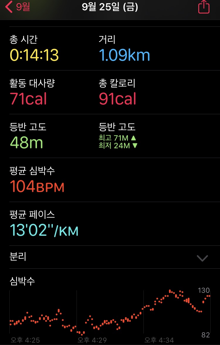 거리에 비례한 시간과 심박수 모두 만족스러웠다. 처음 시작했을 때 3km 뛰었을 때