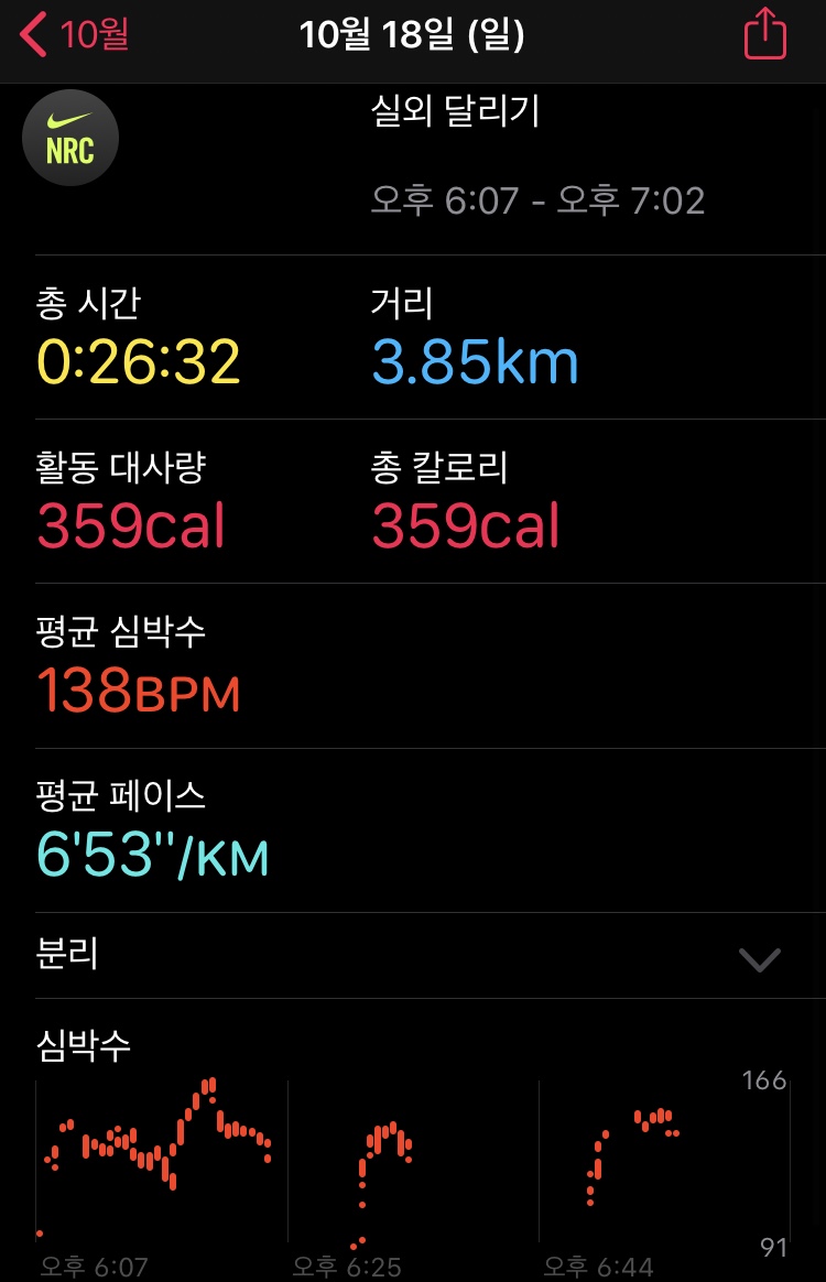 | [러닝로그] 퇴근 후 3.5KM 러닝_날이 춥다...ㅠㅠ (2) | 2020.10.15 |